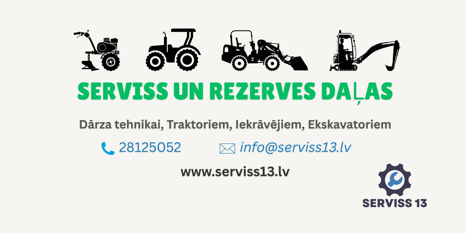 Serviss un rezerves daļas dārza tehnikai, traktoriem, iekrāvējiem, ekskavatoriem