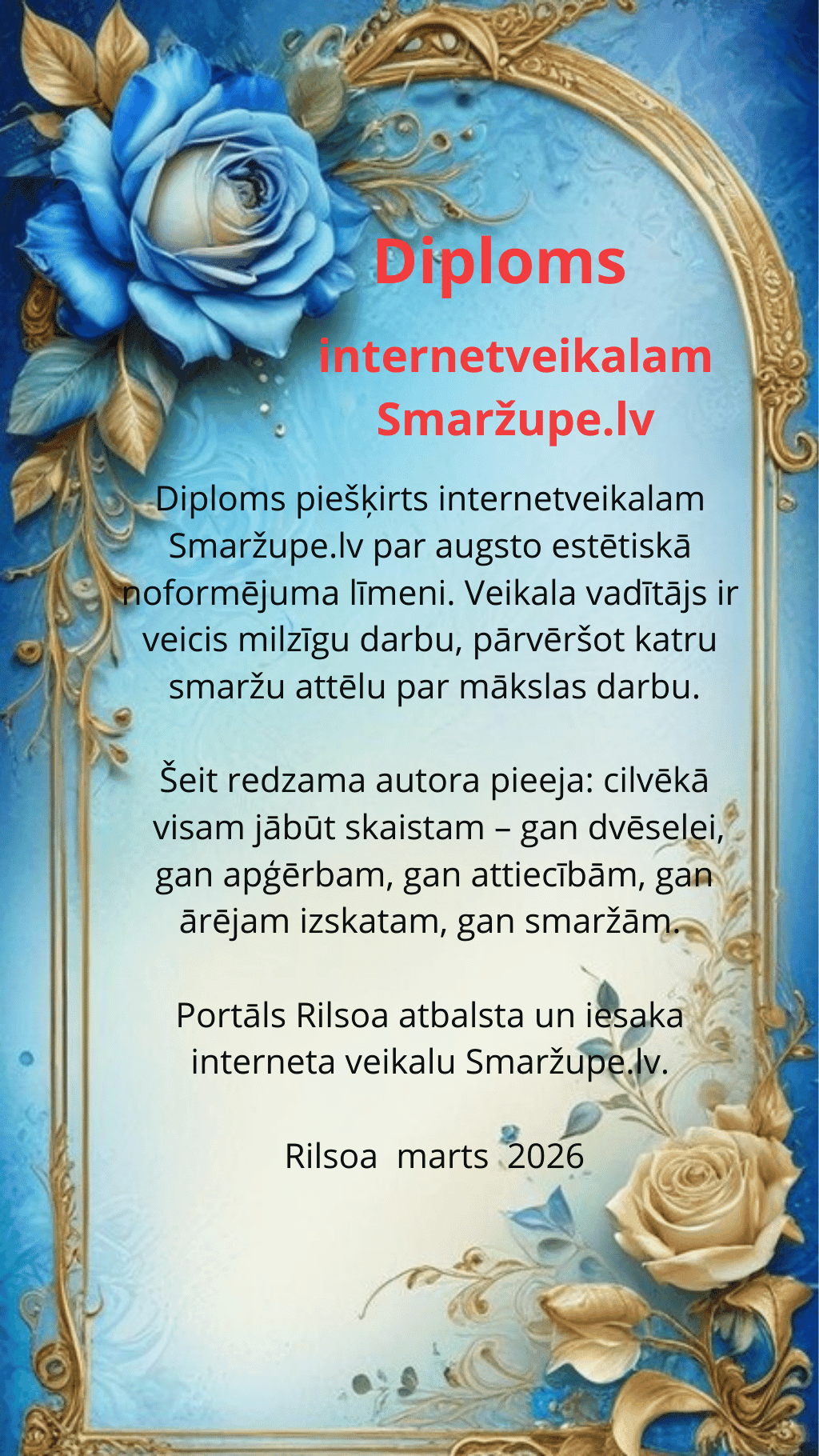 Diploms piešķirts internetveikalam Smaržupe.lv par augsto estētiskā noformējuma līmeni. Veikala vadītājs ir veicis milzīgu darbu, pārvēršot katru smaržu attēlu par mākslas darbu. Šeit redzama autora pieeja: cilvēkā visam jābūt skaistam – gan dvēselei, gan apģērbam, gan attiecībām, gan ārējam izskatam, gan smaržām. Portāls Rilsoa atbalsta un iesaka interneta veikalu Smaržupe.lv.