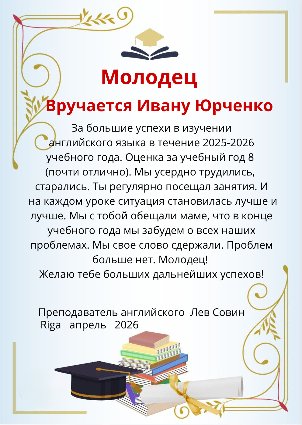 Молодец! Наградной лист