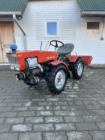 Вот, например, только что отремонтировали мини-трактор TZ-4K-!4 чешского производства. Отремонтировали карбюратор. А сейчас он выставлен на продажу за 3200 евро. К нему прилагаются культиватор и лопата для чистки снега.